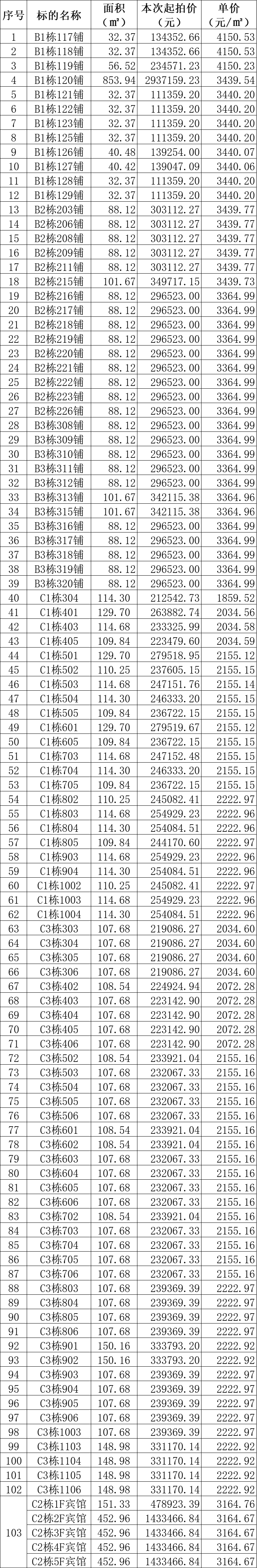 一、拍賣標的:金寨縣斑竹園鎮(zhèn)瑞海國際商貿(mào)城商鋪、住宅房、賓館等103處房產(chǎn),商鋪最低11.136萬元起,住宅最低21.25萬元/套。詳情見下方所附清單: