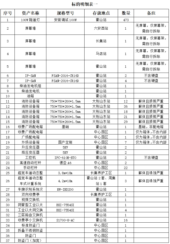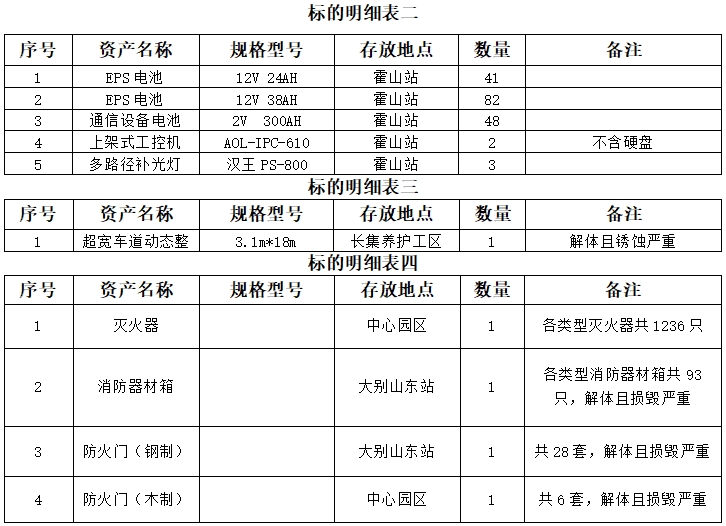 標(biāo)的詳情見中拍平臺(tái)所附標(biāo)的明細(xì)表,所附標(biāo)的明細(xì)表上的數(shù)據(jù)及規(guī)格型號(hào)等信息僅供參考,以實(shí)物現(xiàn)狀為準(zhǔn),成交后以現(xiàn)場(chǎng)實(shí)物為準(zhǔn)移交。