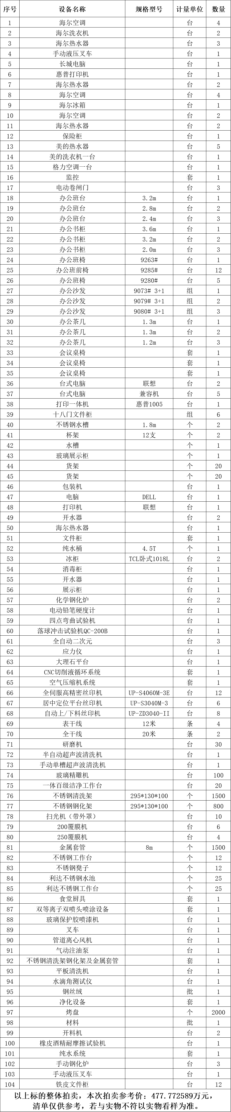 以現(xiàn)狀拍賣,現(xiàn)狀移交。標(biāo)的清單見(jiàn)標(biāo)的物介紹相關(guān)附件。所附清單上標(biāo)的的數(shù)量及規(guī)格型號(hào)、廠家等信息僅供參考,若與實(shí)物不符以實(shí)物看樣為準(zhǔn),成交后以現(xiàn)場(chǎng)實(shí)物為準(zhǔn)移交。成交后,委托方提供增值稅專用發(fā)票。